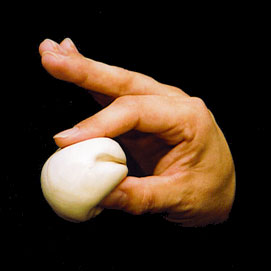 Hold putty between the right thumb and finger as shown. Squeeze as firmly as you can and repeat with the other hand.